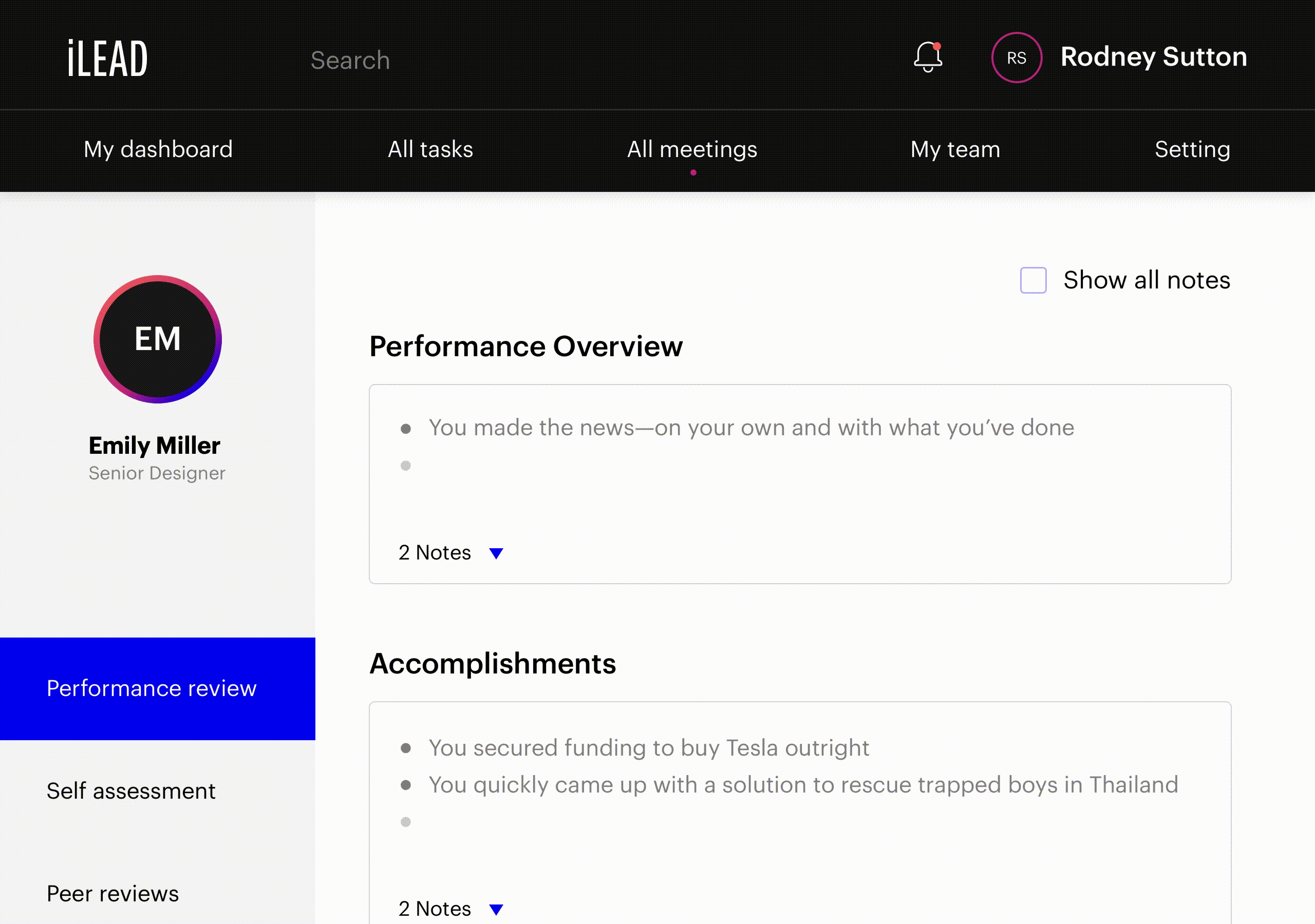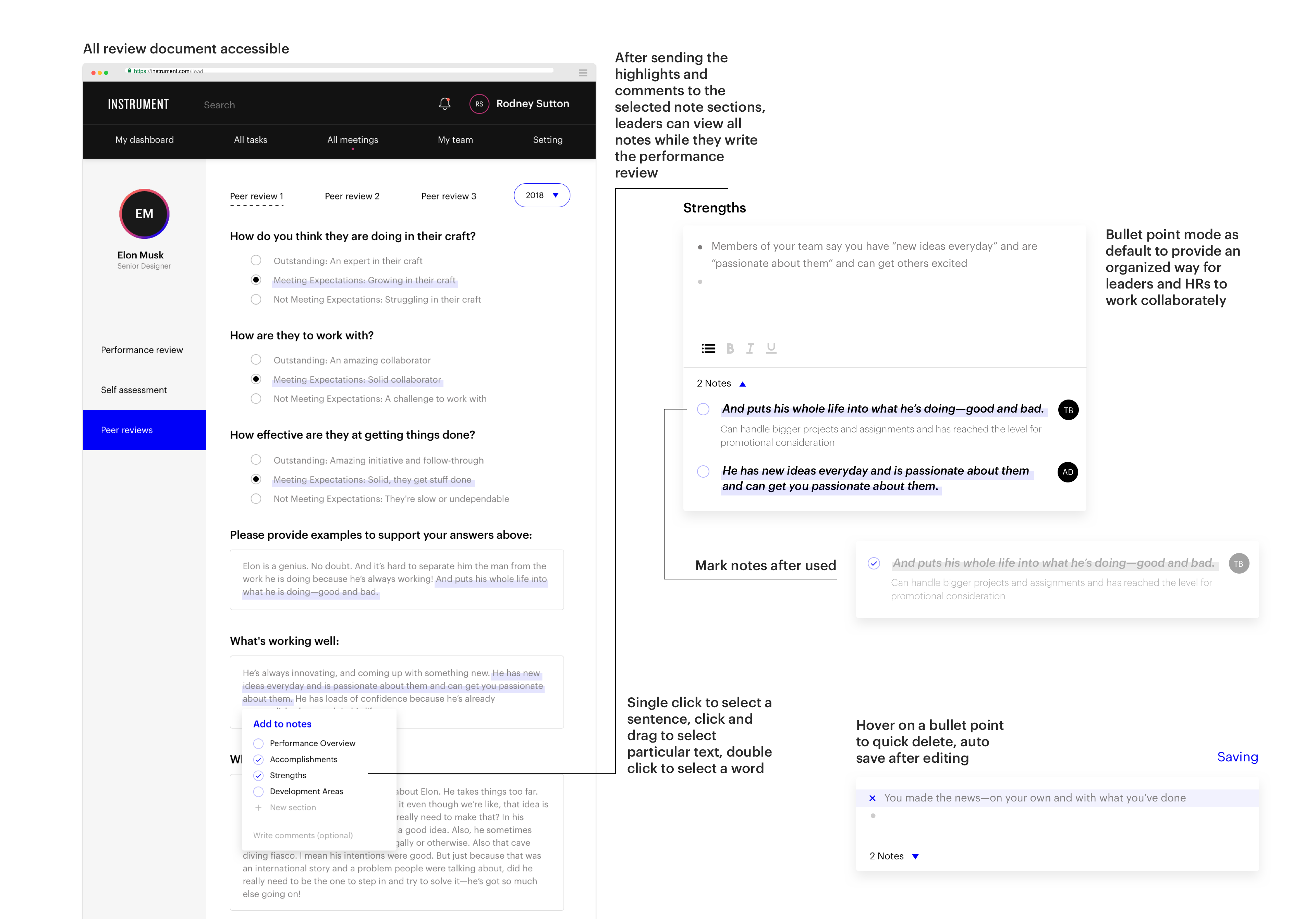 As a manager of 10+ people's team, I want to better utilize the highlighted notes and comments discussed during the meetings, so that it can help me organize key information more efficiently and write reviews much easier.