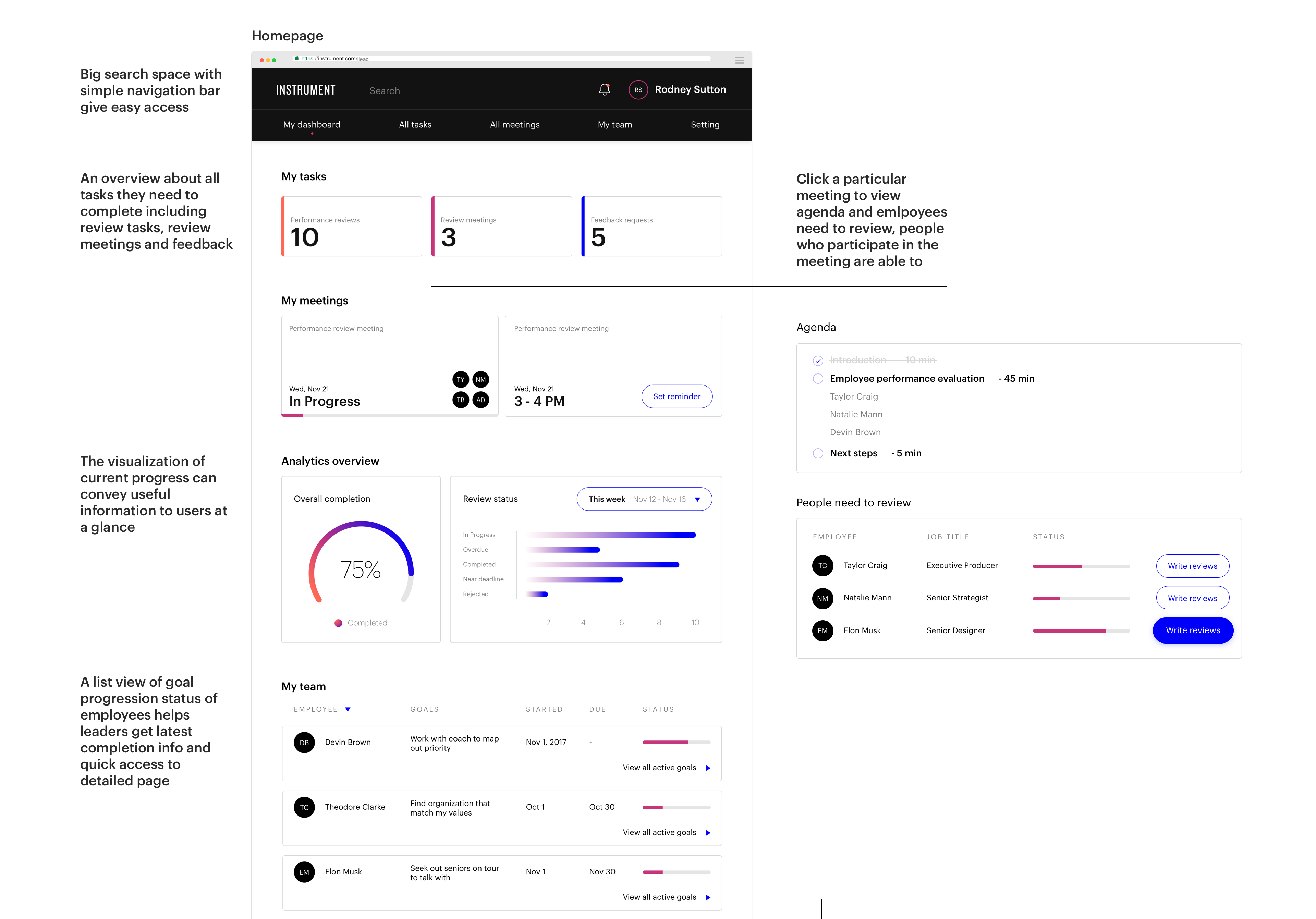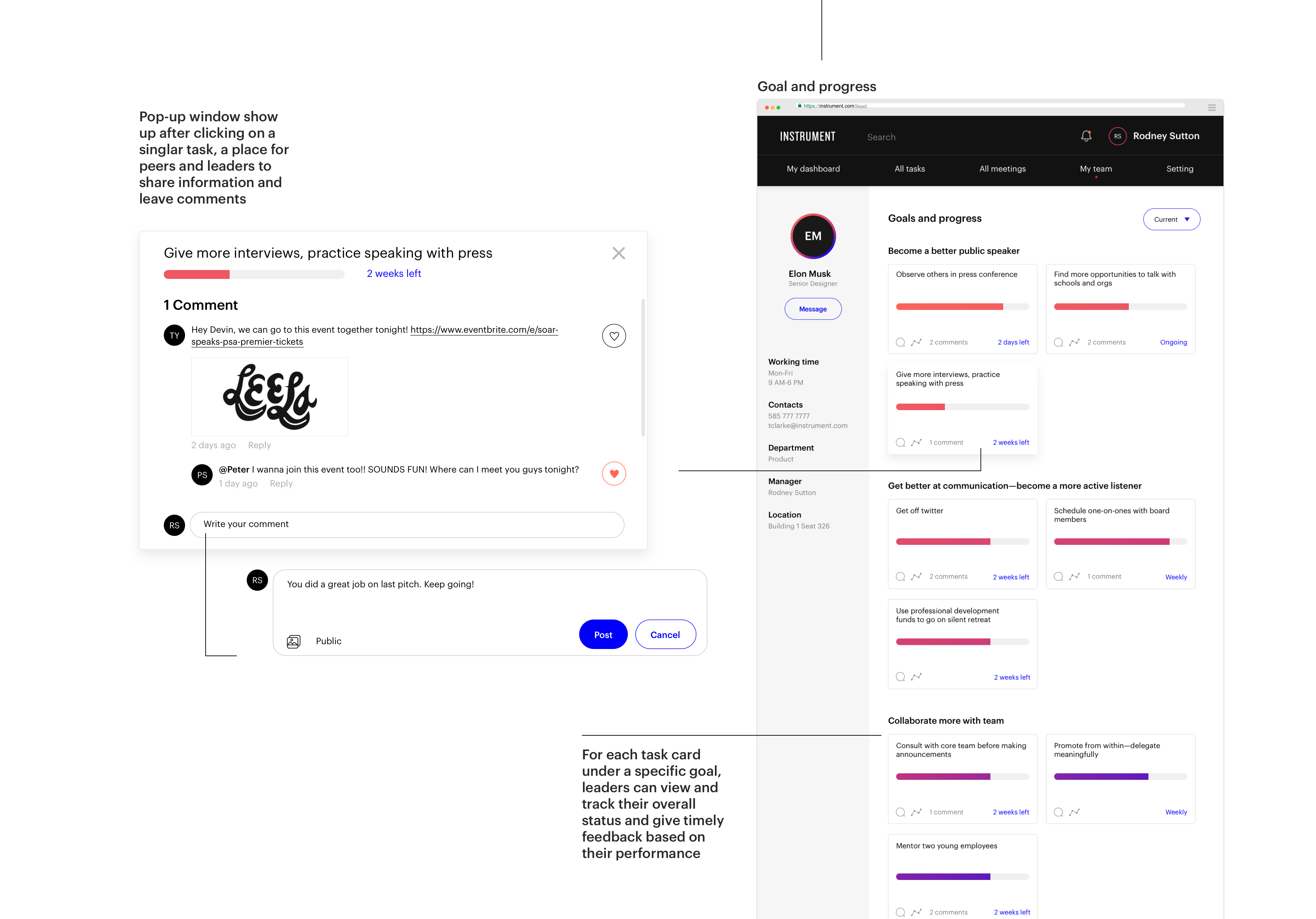 Leaders in Instrument struggle to connect key points of the documents of performance reviews to make the evaluation process collaboratively and efficiently. They also don‘t have an easy-to-use way to give accurate and timely feedback on employees’ achievement and development.