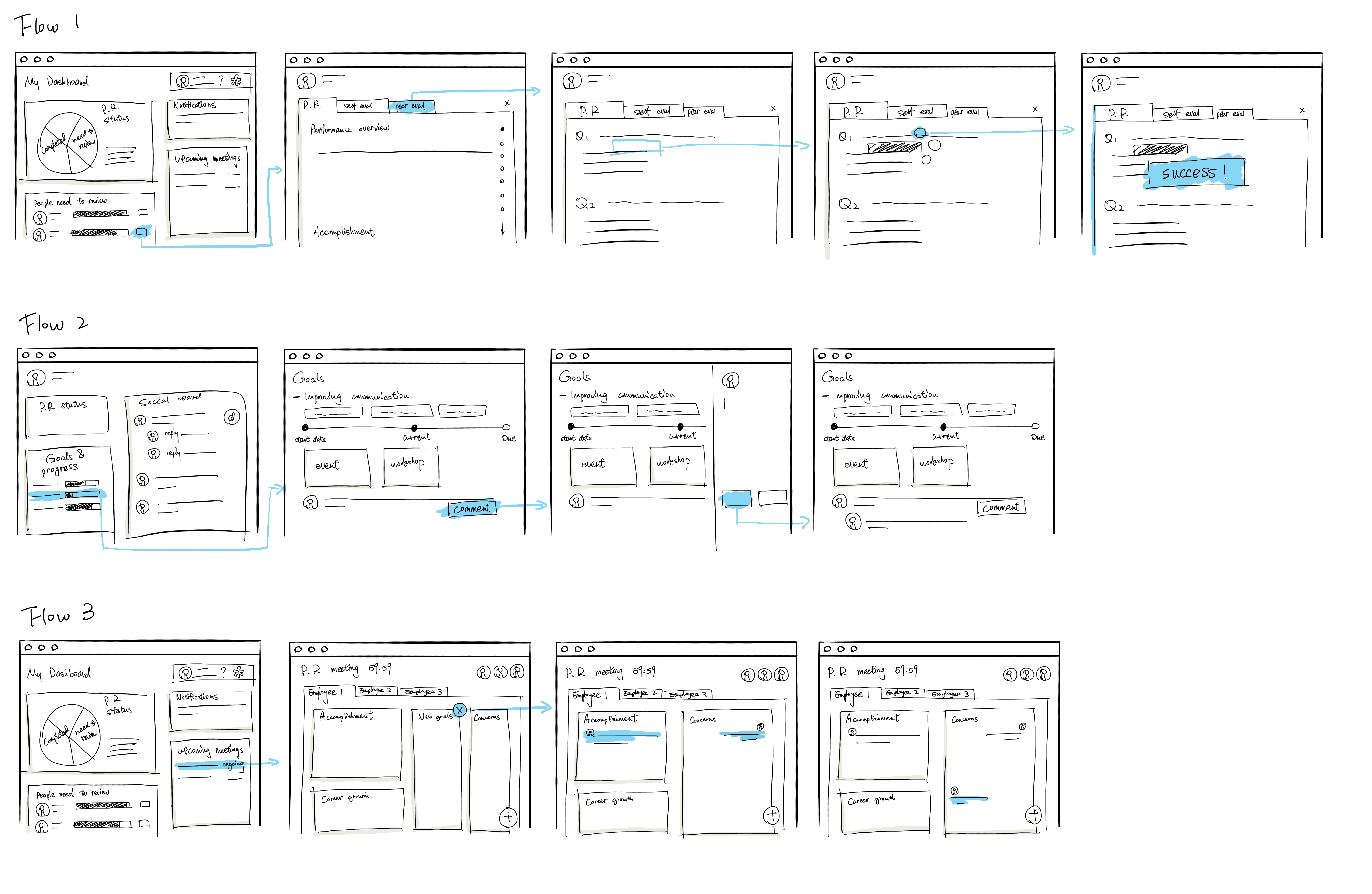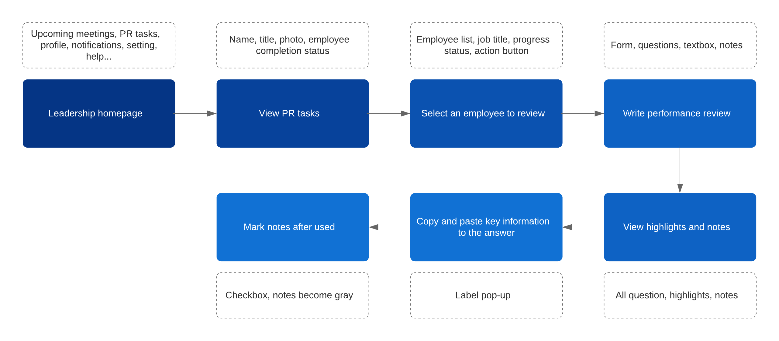 I identified the basic structure of each flow and explore the task and requirement linear flow. Make sure users are able to track comments and notes across multiple windows and stages for easy access and recall. Also, I determined the visual hierarchy and layout on each page to ensure the information displayed in a clear and meaningful way.